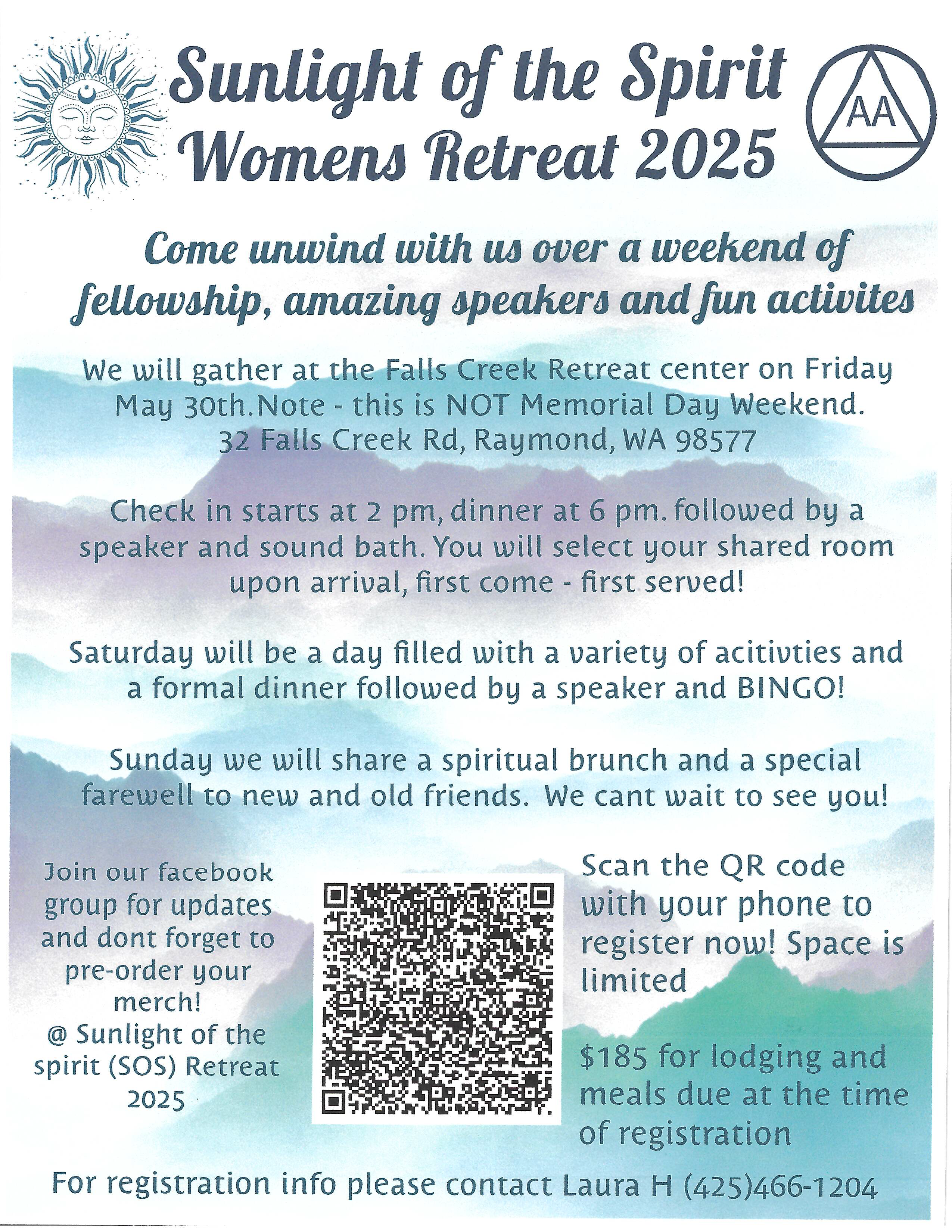 2025-05-30 Sunlight of the Spirit Women’s Retreat 2025 Sunlight of the Spirit Women’s Retreat 2025 May 30 - June 1 Sunlight of the Spirit Women’s Retreat 2025